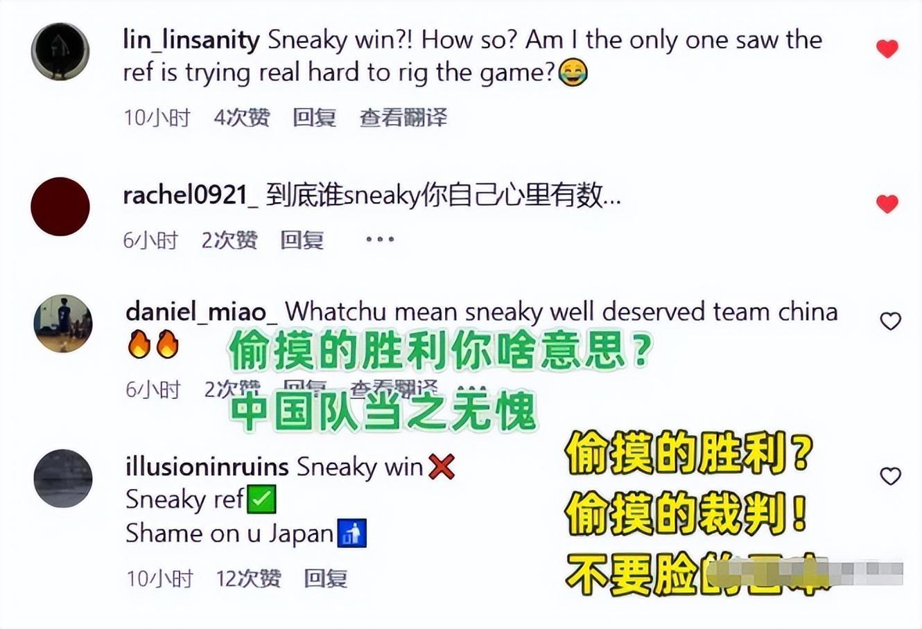这个词直译就是“鬼祟地、偷偷摸摸地赢”,明摆着暗示中国男篮的胜利来路不正,这不是明晃晃的羞辱吗?